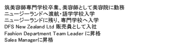 現在は、DFS NZ Ltdにて、化粧品コーナーのスタッフ26人と、受付スタッフ7人。