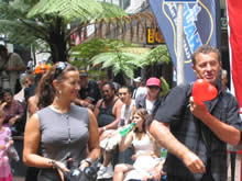 日本に比べると、その芸が良かった時、コインを入れてあげる人がニュージーランドには多い気がします。日本人、 特に年輩の方達はあまりストリートパフォーマンスに関心を持たないですよね。それにみな急いで歩いているので、 気にとめるヒマもないような気がします。それに比べてニュージーランド人はのんびりしていますし、 なんでも楽しそうなことがあれば参加したいと思っていそうな陽気な人柄です。