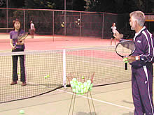 ちょっとグリップの位置がおかしいと、遠くにいても先生からすぐに“指摘”が入ります(見てないようで見てるんですよね)。「少し足をこっちに向けて」などの指示通りにすると、思い通りにボールが打てたりするので、プロのコーチングのうまさに驚きです。その上、7:30〜9:00までコートをめいっぱい使いながら効率の良い練習をさせてくれます。