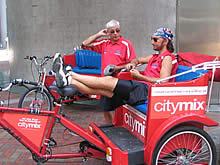 私はこの日、友達とスカイタワーの前で待ち合わせをしていて、歩いてViaductまで行く予定だったのですが、友達が「あれ、観光客用だけど無料なんだって。乗ってみようよ」と人力自転車を指差すのです。本当に無料なのかなー?と、