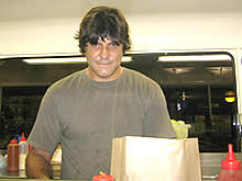 ハンバーガーを作ってくれている一見怖そうなお兄さんも、カメラを向けると笑顔で答えてくれました。