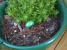 イースターの当日、私のホームステイ先でも朝からさっそく家のまわりでチョコレート探しが始まってました。朝起きると、朝食よりも前に子供達はバスケットやバケツを持って、スタンバイ!!ホストマザーに「あなたもチョコを集めなさい」とバケツを貸してくれました。庭に出ると植え込みや芝生の中、窓の枠などに卵のチョコレートがコロンコロンと転がっていました。