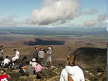 さて、旅行当日、ドキドキしながら「バスツアー」のオフィスへ。受付を済ませると、そこには一人の女の子が座ってました。その子はイングランド出身の子で、生まれたのはNZらしいのですが、2歳のときにイングランドに移ったので、NZの記憶を覚えていないとか。今回は高校卒業を期にNZ旅行を決めたそうです。たわいもない話をしてると、いつの間にか人・人・人!! どうやらバスが到着した様子。