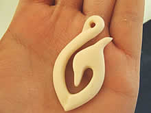 ここではオリジナルのペンダントを作るので、まずはじめにデザインを決めます。私はマオリ独特の錨といるかを合体させた形にしました。他の二人はカナダのリーフ・鯨の尻尾のモチーフでデザインしていました。紙に大体のデザインを書くと、今度は直接骨に鉛筆でデッサンしてきます。