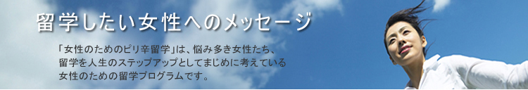 このプログラムは、少しでも多くの女性が、留学(英語修得)をきっかけに新しい可能性を見つけ出し、 自分の価値を高め、前向きに向上心を持って進んで行けるように、それを応援できるプログラムとして作りました。