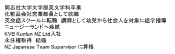モチベーションアップ講演 「自分が求める仕事」にこだわり続け、活躍の場を見つけることができた京さん。モチベーションアップ講演では“就職活動のコツ”“面接合格の秘訣”や、“ニュージーランドの企業で働く面白さ”“裏話”などをお話していただきます。 努力の結果、充実した人生を歩んでいる素敵な女性から、ためになるお話をたくさん聞いて、どんどん自分のモチベーションをあげていきましょう! |