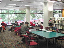 図書館には子供用の本も置いてあり、ハリウッドゴシップなどの書いてある雑誌やファッション誌なども置いてありますので、 楽しみながら英語の勉強をすることができそうです。図書館内で座って本を読める場所もたくさんあり、 多くの人が好きな本を手にゆったりと座って本を読んでいました。