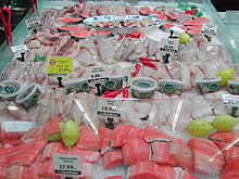 海に囲まれたオークランドでは日本と同じように新鮮なシーフードにもめぐまれています。 マッスルという貝やサーモン、お肉も小さい単位のパッケージではなく、キロ単位の大きなパッケージで売られています。 そして不思議なのが、牛肉や豚肉の薄切り肉が売っていません。牛肉はだいたいステーキ肉のような分厚いもので豚肉も1cmくらいの厚さのものからがほとんどです。