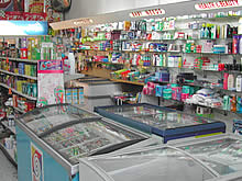 売っているものは様々で、雑貨屋というより、小さいスーパーマーケットみたいな感じです。日曜雑貨品は一通り置いてありますが、それ以外に日本のコンビニにはない、 野菜や果物類が多少おいてあり、夕食の時に、急に玉ねぎやキャベツといった一般的な野菜が必要になった時にとても便利です。また、ワインやビールなどのお酒やタバコなどもあり、またお店の前には花が売っていたりします。