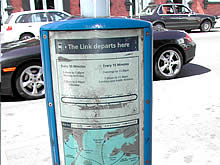 リンクバスは東京の山手線や大阪の環状線のように、市内の主要な場所を内回りと外回りの2本が同時にぐるぐると回っています。所要時間は1周約1時間で、料金は1周でも、1区間でも共通で$1,50(日本円で約120円)です。