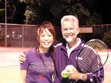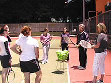 私は真ん中のクラスに入りましたが、どのクラスも初めはグリップの持ち方から教えてくれます。初日にフォアハンド、バックハンドを教えてもらい、2日目にはサーブとスマッシュ、ボレーを教えてもらいました。そして、今日3日目はそれら全体の復習、そしてダブルスの試合形式の練習まで。本当のビギナー達がたった3週間でなんとか形になりました。それもこれも先生のコーチがうまいから!感心するくらい教え方がうまいのです。