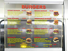 平日の18:00位からと、週末の終日のみなので、日本で言う焼き鳥屋さんの屋台のようなものでしょうか?それか、こちらの人は飲んだ後、小腹がすいた時にハンバーガーを食べているようなので、日本で言うラーメン屋さんの屋台のようなものと言ったほうが良いかもしれません。