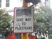 今日は町の至る所で見つけることができる「GIVE WAY TO PEDESTRIAN」をご紹介。 「GIVE WAY」とは「道をゆずりなさい」という意味で、車を運転するひとは特に気をつけなければならないセンテンスになります。「PEDESTRIAN」は「歩行者」という意味ですので、「GIVE WAY TO PEDESTRIAN」で「歩行者に道をゆずってください」という意味になります。この「PEDESTRIAN」という単語は町のいろんなところで目にすることがありますので必ず覚えておきましょう。