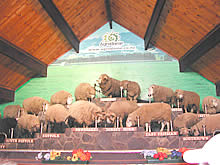 ショーが始まると、19種類の羊たちが一匹ずつステージ脇から自分の立ち位置に走っていきます。立ち位置の場所に餌がおいてある仕組みになっているのです。司会の男性が1匹ずつ特徴を説明していくのですが、その途中、隣の羊の餌を食べてしまう羊がいたり、順番を間違う羊がいたりでハプニングの連続。とても面白かったです。