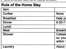 基本ルールは英語で書いた確認書をホームステイ先へも渡して、日本語で書かれた同じものを参加者に渡し、両方で確認。