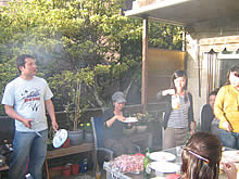 朝小松さんが仕入れてきたという鯛と鯵のお刺身のお寿司に、NZの料理といえばこれでしょ!のバービー。チキンもビーフもおいしいけど、骨付きのラムは生きててよかったと思える位のおいしさ。